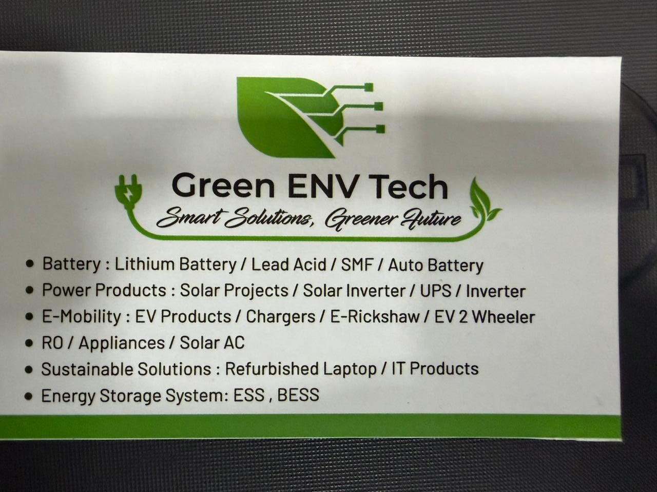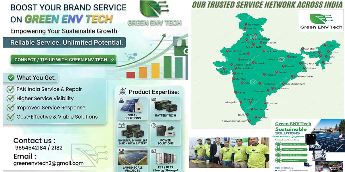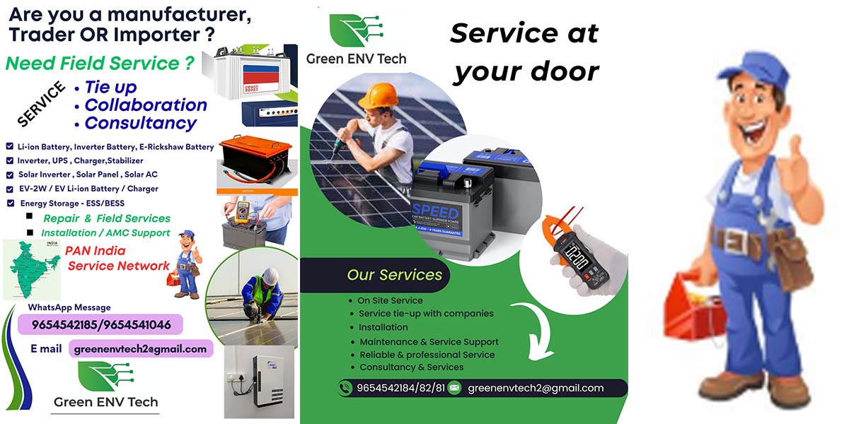 At Green ENV Tech, we understand that setting up a reliable service infrastructure can be challenging, especially for new and small companies in the fields of Lead Acid & Lithium-ion Battery, Inverter, Solar Product, Solar Panel, Solar AC, ESS & BESS, Charger, EV Products, UPS, Stabilizer and Appliances.
